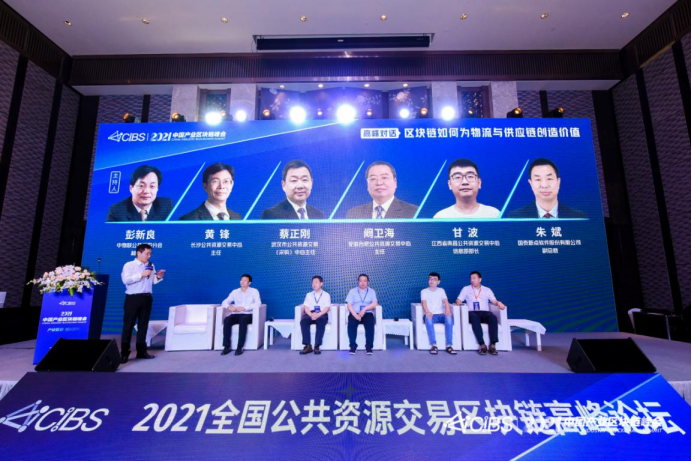在中国物流与采购联合会公共采购分会秘书长彭新良的主持下,长沙公共资源交易中心主任黄锋、武汉市公共资源交易中心主任蔡正刚、安徽合肥公共资源交易中心主任阚卫海、江西省南昌公共资源交易中心甘波、新点软件副总裁朱斌以“区块链深化公共资源交易跨区域合作”为题开展第一轮高峰对话。
