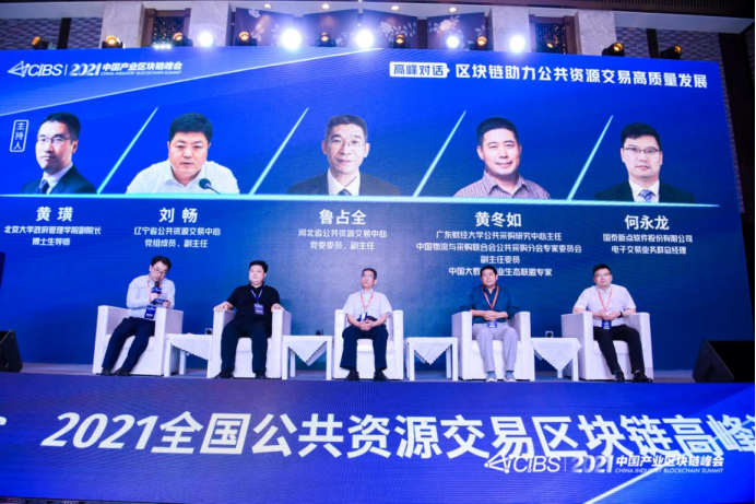 在北京大学管理学院副院长、博士生导师黄璜的主持下,辽宁省公共资源交易中心党组成员、副主任刘畅,河北省公共资源交易中心党委委员、副主任鲁占全,中国经济体制改革研究会理事、广东财经大学公共采购研究中心主任黄冬如,新点软件电子交易业务群总经理何永龙就“区块链助力公共资源交易高质量发展”开展第二轮高峰对话。