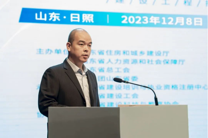 山东省建设科技与教育协会会长王崇杰,山东省城镇化工作领导小组办公室原专职副主任宋锡庆,山东省住房和城乡建设厅建筑市场管理处四级调研员郭玉军,山东省住房和城乡建设厅培训注册中心副主任魏静明,山东外国语职业技术大学党委副书记、纪委书记郑成刚,以及多地住建部门领导出席。新点软件建设BG联席总经理杨海城现场致辞。