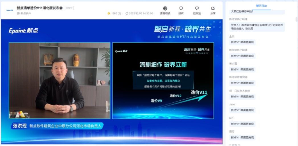 本次发布会系统呈现了新点清单造价V11河北版在适配地域特色、赋能业务效率、推动行业共生等方面的价值。未来,新点软件将继续依托技术创新与本地化服务,与河北建筑行业伙伴携手共进,共同推进工程造价管理的数字化转型与升级。
